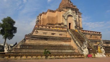 タイ チェンマイ旧市街の中心部に聳える豪華絢爛なワット・チェディ・ルアン(Wat Chedi Luang)